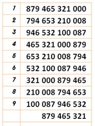 (tous les chiffres, une fois). Pour chaque ligne N est égal