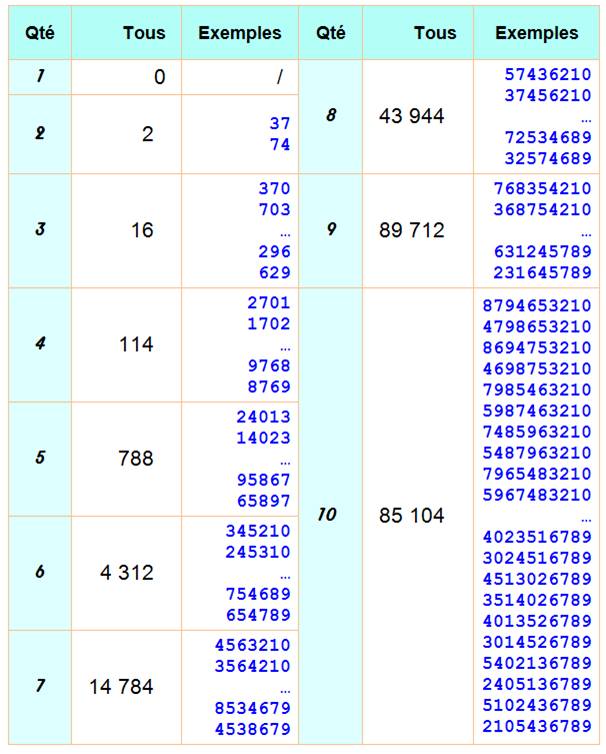 nombre de 10 chiffres non répétés, programmé