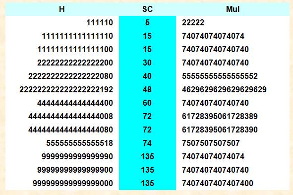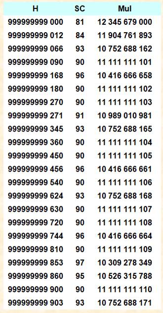 les plages de nombres sans chiffre zéro. Et, une somme de chiffres qui croît (ici > 36)