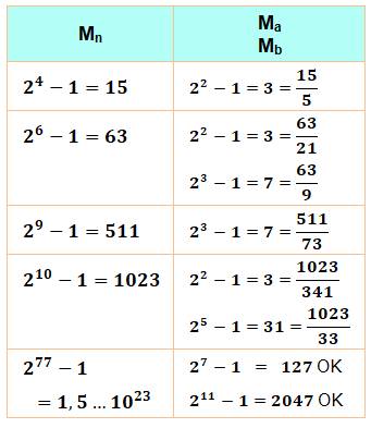 n = a.b avec a et b > 1 Mn = 2n – 1 , Ma = 2a – 1,