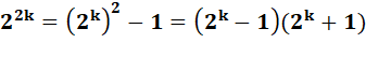 – 1 = (2n – 1)(2n + 1) Cas d'un indice multiple d'un premier 22k