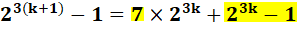 Si on suppose que 23k – 1 est divisible par 7, alors son