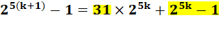 – 1 est divisible par 31 = 25 – 1 27k