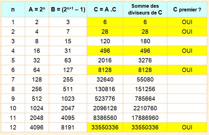 un nombre parfait s'écrit aussi bien: 2n – 1 (2n