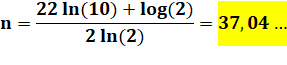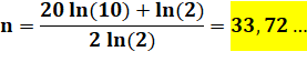 (n – 1) ln(2) + n ln (2) = 20 ln(10) |