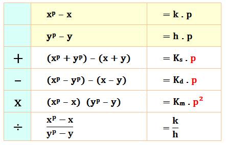 diminuée de la différence des nombres, est un multiple de p. Idem pour addition, et multiple de p² pour la multiplication. Selon l'opération