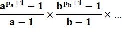 b, b2, ... bp)(1, c, c2, ... cp)(... Soit: (p+1) facteurs fois (q+1)