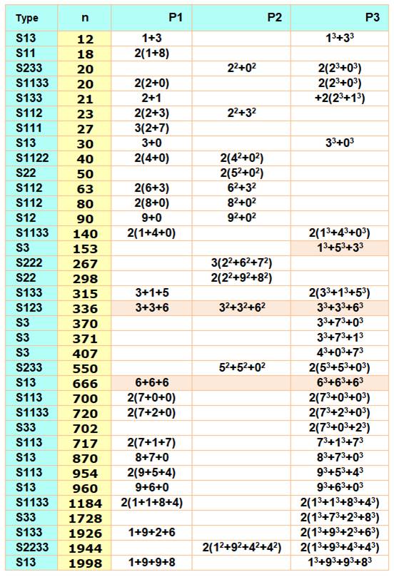 chiffres. Exemple 336 = 3+3+6 + 32+32+62