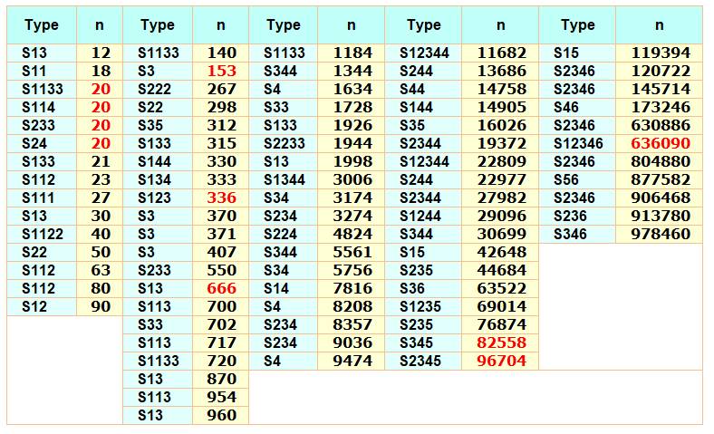 Nombres expository de Keith à deux termes T1 et T2 (sans doute les seuls). Pour