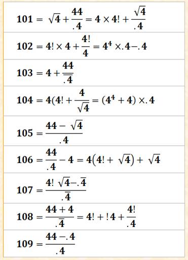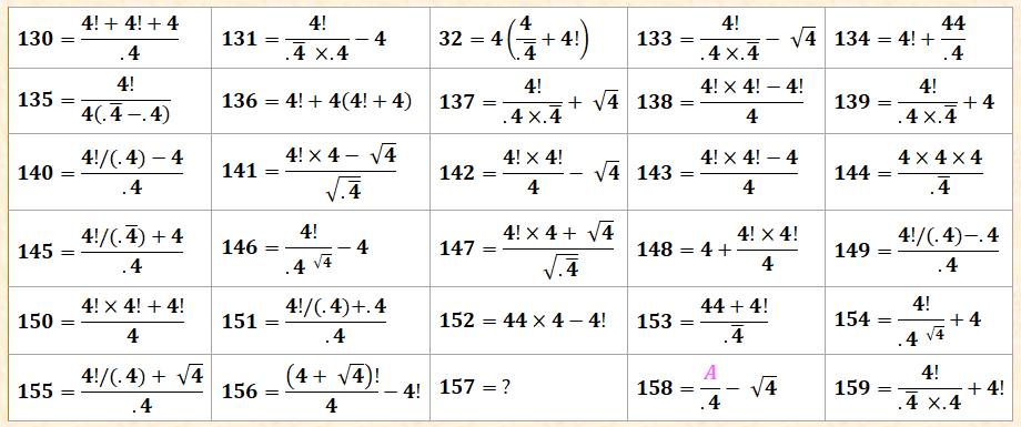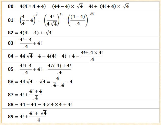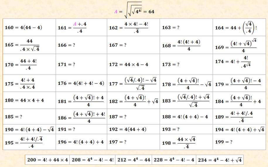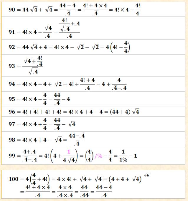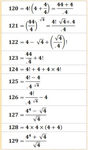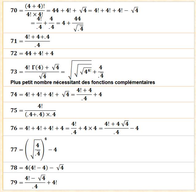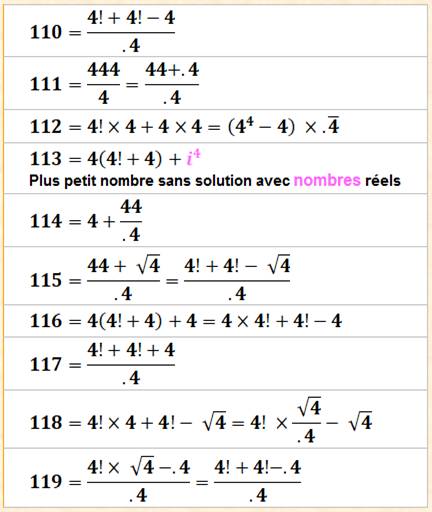 atteindre le nombre n avec des opérations combinant quatre fois le même