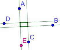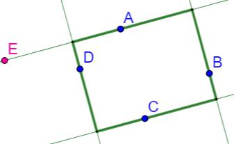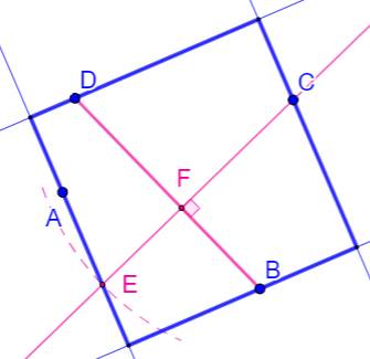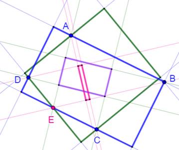 de carré. Il faut sélectionner celui qui passe par A. Suite de la construction Droite AE. Perpendiculaire en D à AE. Perpendiculaire en C à la droite en D. Perpendiculaire en B à la droite en C. |