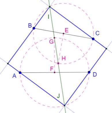 et J. Droites IB, IC, JA et JD qui délimitent le carré
