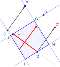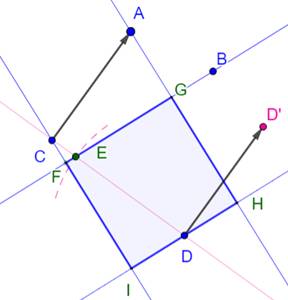 reporté en DD' et en DE après rotation de 90°. Droite BE. Perpendiculaires passant par les autres points. Commentaire Selon le choix du report du vecteur, il existe