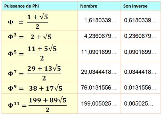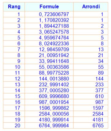 d'un nombre de Fibonacci de rang n C'est la valeur arrondie des puissances de Phi,