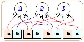 figure sont nommés a ou b au choix. Les ronds ont trois bras. Chacun doit être