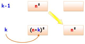 retrouver les nombres au carré à partir du cube de k k3 = (n + k )² – n² = n² + 2nk + k² - n² = k (2n + k) k2