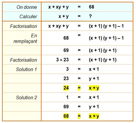Trouver x + y …