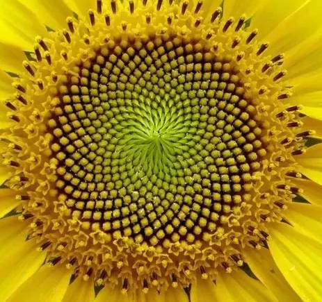 spirale des tournesols, des feuilles sur les tiges, des dessins du chou-fleur
