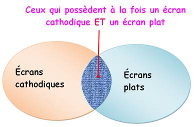 ont un écran plat et 50 ont un écran cathodique. Combien possèdent les deux? Réponse: 70 + 50 = 120, or ils ne sont que 100. Donc, 20 possèdent à la