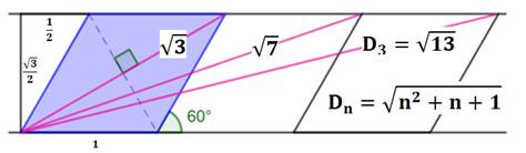 équilatéraux accolés et de côté unité (angles 60°). Ils forment d'abord un losange,