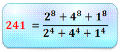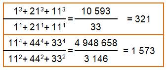 de chiffres portés à une puissance et le dénominateur égal à la somme des