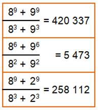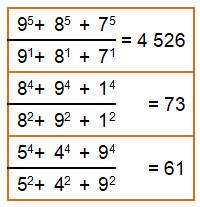 de nombreux nombres égaux à une fraction dont le numérateur est égal à la somme