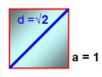 = 2 et D = √2 Et, d'une manière générale: D = a . √2 Avec a la mesure du côté du carré |