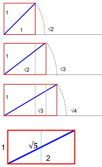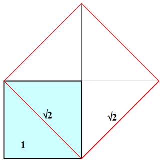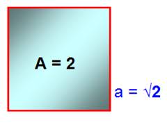 Côté du carré d'aire égale à 2 A = 2 = a² a = √2 |