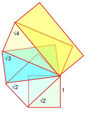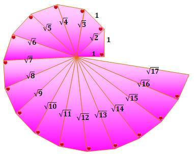 dite rectangulaire ou escargot de Pythagore. Autres noms: spirale de Théodore de Cyrène ou spirale d'Einstein