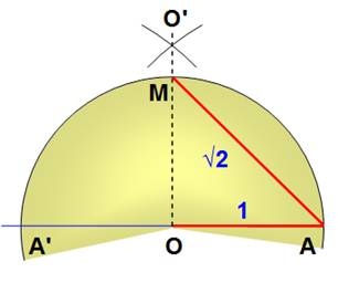 rayon unité en O, puis reporté une fois vers le bas et deux fois vers la