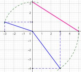 sont reportés sur les axes (arcs verts). Le segment (rose) qui joint les intersections