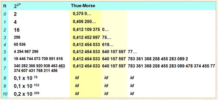 Thue-Morse ou Prouhet-Thue-Morse Suite, nombre, constante Suites binaires aux propriétés