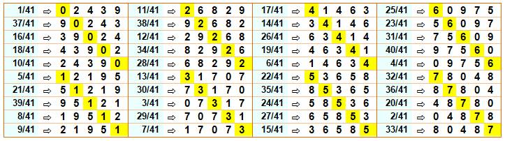 période de longueur égale à 5. Pour couvrir les 40 fractions en n/41 par