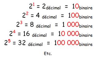 binaire 1 2décimal = 10binaire |