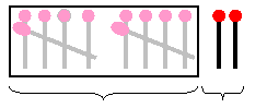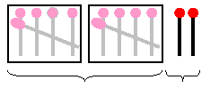 enveloppe de 10 plus 2, c'est la même chose que 2 enveloppes de 5 plus 2. |
