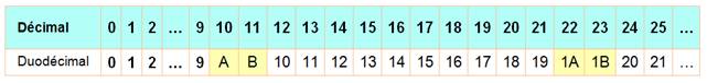 duodécimal = 24 en décimal (deux fois