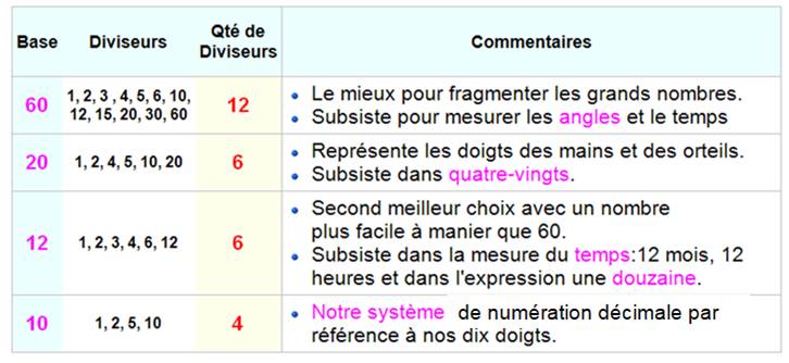 Utilisé pour les angles, le temps... Origine Babylonienne |