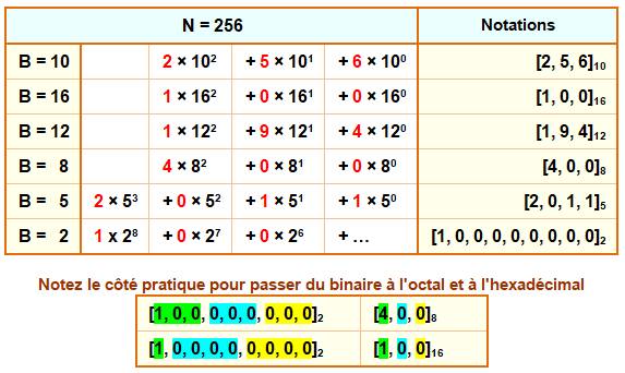 développe d'une seule telle façon avec cette base. Exemple avec 256 en diverses bases de numération