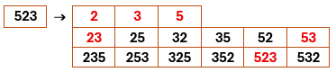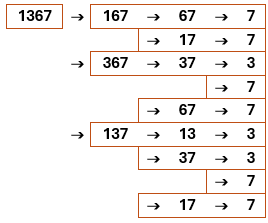 -> 7 … 24: 34673 -> 3467 -> 467 -> 47