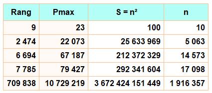p1.p2 + p3.p4 p < 10 = 3 / 3, 100% p < 20 => 54 / 210, 25,7% p < 50 => 366 / 4 095, 8,9 % p < 100 => 1 512 / 37 950, 3,98% |
