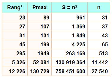 Avec la somme des premiers impairs (tous sauf le 2) (Rang ou