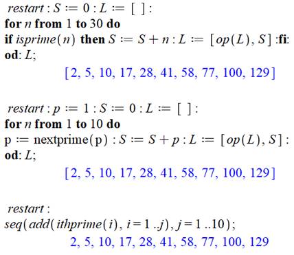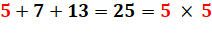 Lecture: au rang 9, la somme de 2 + 3 + 5 + … + 23 =