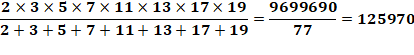sont les cas où la somme cumulée des nombres premiers divise le produit de