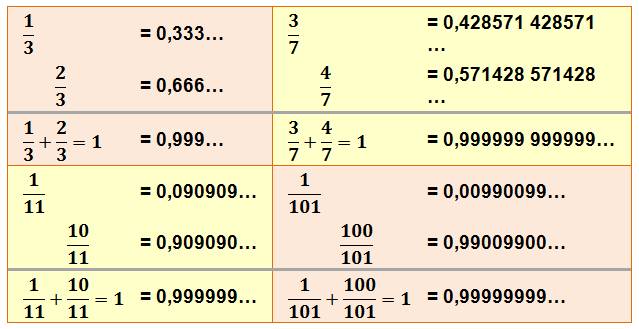 / 999999999 = 0,123456789 123456789 … 123456789