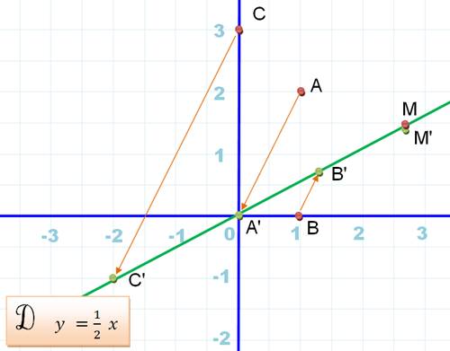 images de A, B et C appartiennent à la droite des invariants. Pour tout point M l'affixe