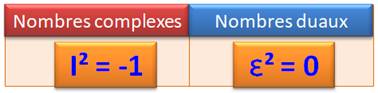 duaux, comme les nombres complexes, sont composés de deux nombres, l'un réel