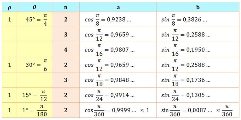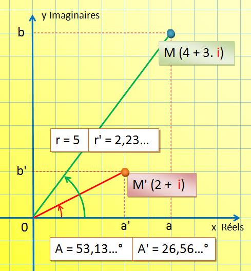 représenté par M. Le module (r) et l'argument (A) sont calculés ci-dessous)