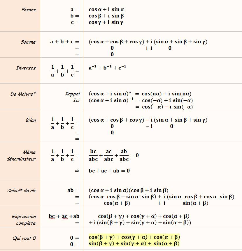 * Formule de De Moivre / Trigo pour Calcul de ab / Rappel i² = –1