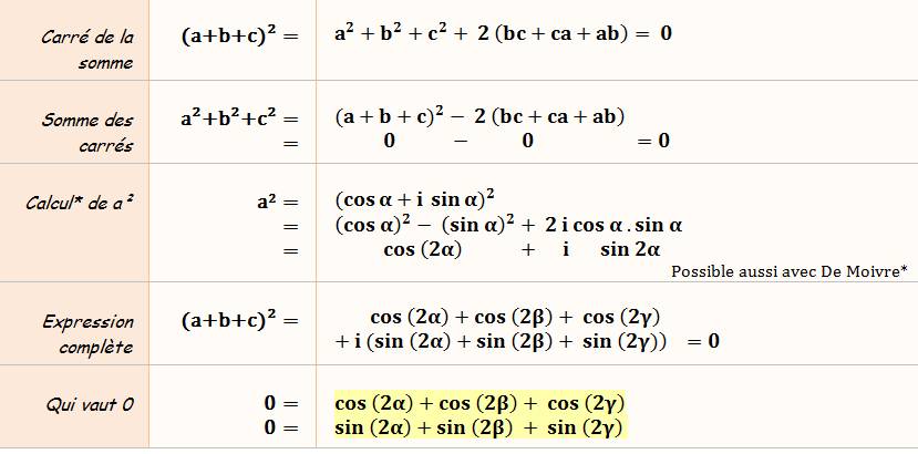 * Formule de De Moivre / Trigo pour Calcul de a²