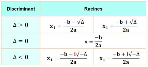 Équation du second degré (trinôme) y compris à discriminant négatif |